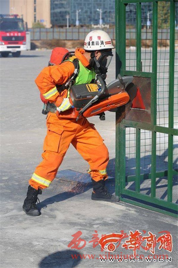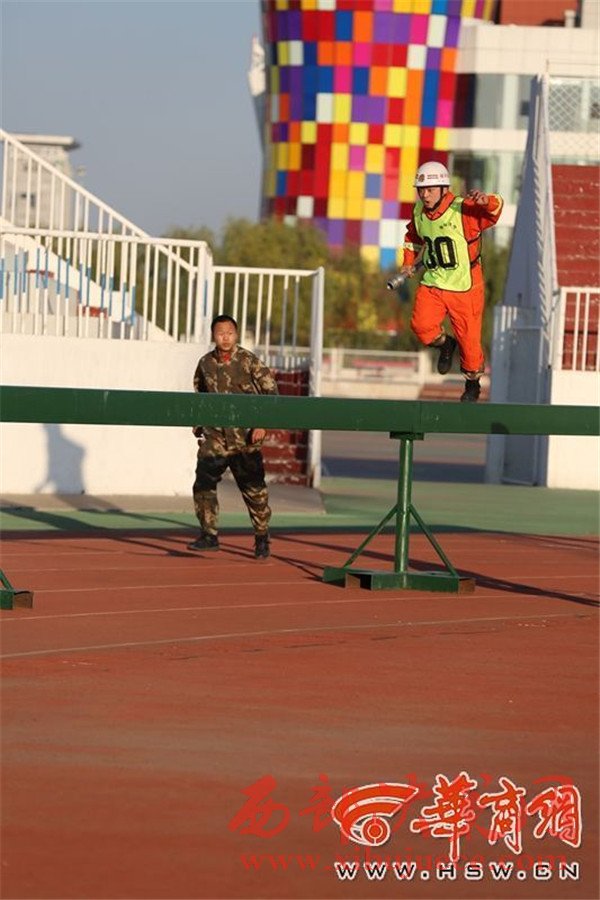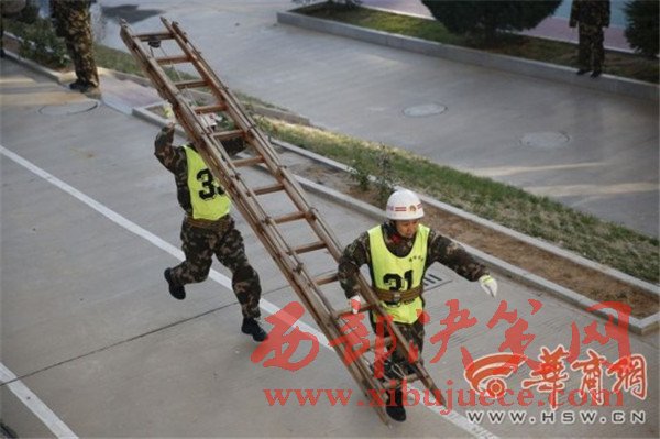 負重攀登10樓  榆林市消防大比武130余名鐵漢炫技
