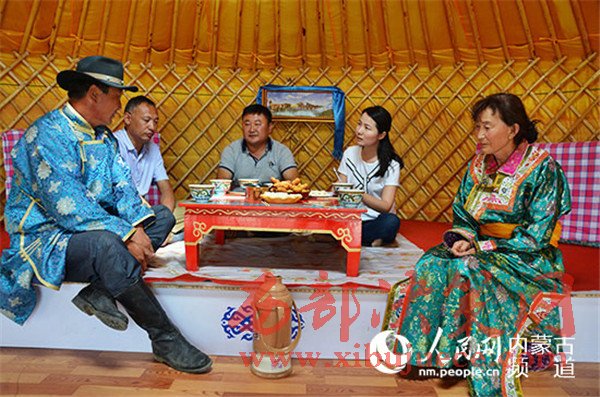 人民網(wǎng)記者在巴圖孟克開辦的草原牧家樂蒙古包內(nèi)采訪