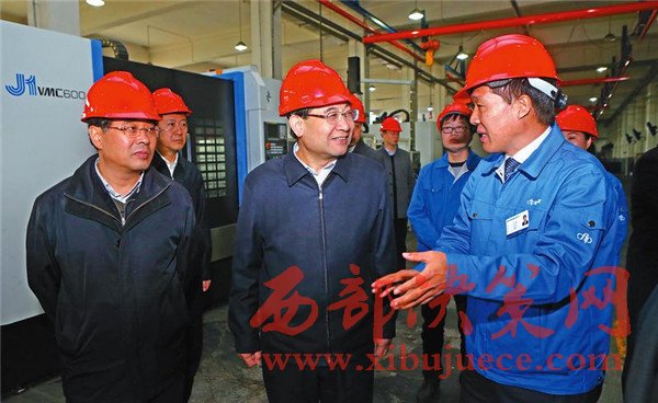 11月19日,省長胡和平在永壽縣陜西秦航機械制造公司向企業(yè)負(fù)責(zé)人詢問技術(shù)工藝,了解產(chǎn)品前景。