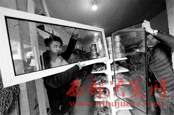 令趙女士沒想到的是,27日下午5點多,這群人又出現(xiàn)了。當時趙女士的兒子田江正在里屋吃飯,外面的防盜門虛掩著,突然七八個男子帶著洋鎬把就沖了進來,沖著貨架一通亂砸。田江說:“我聽見響動掀開門簾出來,都是蒙面的小伙,我聽清楚了對方的一句話‘還敢開還砸!’,我當時看著對方人多,沒敢追。”目前,趙女士一家已經報警,韋曲派出所正對此事做進一步調查。