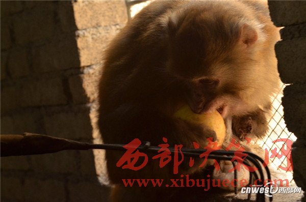 2016年12月8日,這只獼猴終于同意啃食寧強(qiáng)縣野生動植物保護(hù)站工作人員給它喂食的蘋果。