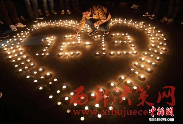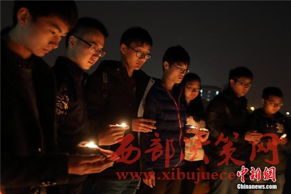 12月12日晚,在第三個(gè)國家公祭日前夜,主題為“愿逝者安息,為生者祈福”的燭光祭活動(dòng)在南京東南大學(xué)九龍湖校區(qū)內(nèi)舉行,來自該校機(jī)械工程學(xué)院的大學(xué)生們點(diǎn)燃蠟燭,擺放成心形和1213字樣,為南京大屠殺死難者集體默哀,寄托哀思。