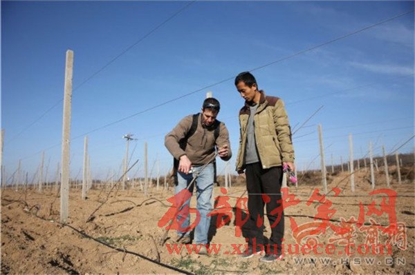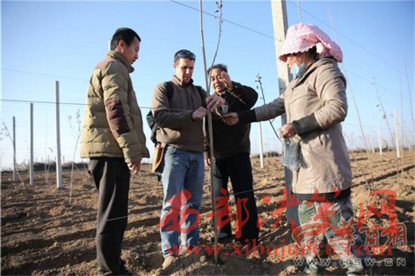 12月8日上午8時30分,淳化縣卜家鎮(zhèn)蔣家山村,當地果農剛吃完早飯,林東已從100多公里外的西安趕到這里,他一邊用熟練的中文問大家“咥飽了沒有”,一邊從背包里掏出果樹剪刀,走進地里查看樹苗的過冬情況。果園的技術員拿個大本子跟在林東后邊做記錄,遇到難點林東就親自示范。