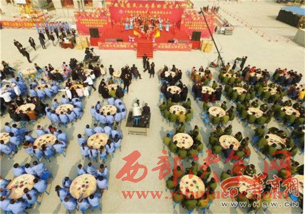 張興民介紹,在為大家發(fā)放了1600萬的工資后,工地上還為農(nóng)民工返鄉(xiāng)之前準(zhǔn)備了聚餐。每個(gè)桌上不僅有自釀的“苞谷燒”,還有八涼兩熱的菜品,同時(shí)按照陜西風(fēng)俗習(xí)慣準(zhǔn)備的有大燴菜,僅大燴菜里面的肉都有500多斤,希望以此方式來感謝農(nóng)民工兄弟一年多的辛苦!