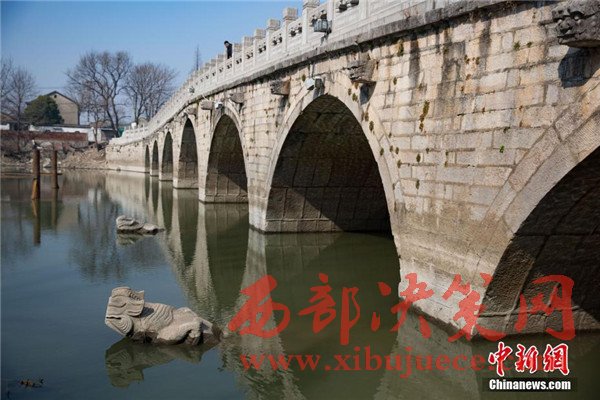 2月15日,位于南京城東運(yùn)糧河上的明代古橋七橋甕橋墩上長(zhǎng)期隱藏水中的四只“怪獸”露出了水面,據(jù)南京城市史學(xué)者胡卓然介紹,這是古人設(shè)計(jì)在橋的分水墩上的分水獸,不僅能分水,減輕水流對(duì)橋體的沖擊,同時(shí)還標(biāo)出了航道,能防止河中的行船撞上橋墩和橋體。據(jù)了解,七橋甕始建于明代,全長(zhǎng)89.6米,高25米,橋身酷似彎弓,共有七個(gè)橋甕,時(shí)間一長(zhǎng),“七橋甕”的名字被叫開了。