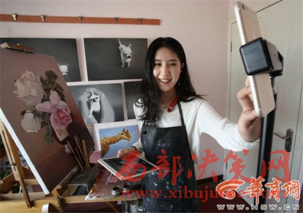 西安美院油畫專業(yè)畢業(yè)生"藍寶寶",為喜歡美術的粉絲直播自己畫畫。