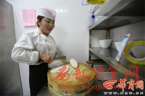 甘肅省天水市的打工妹小娟,在西安市大雁塔一家酒店后廚上班,每天早上5點鐘起床,6點鐘到崗,開始客人的早餐備菜。小娟說自己也不漂亮,玩直播只是想讓更多的人知道,廚師的工作有多辛苦,女廚師更不易。