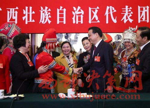 【李克強(qiáng)在廣西團(tuán)巧借“劉三姐”祝福全國女同胞】三八婦女節(jié)這天,李克強(qiáng)來到廣西代表團(tuán)參加審議報(bào)告。他首先祝在場(chǎng)的女代表及女同胞節(jié)日快樂。總理說:“廣西是劉三姐的家鄉(xiāng),她的歌聲至今余音繚繞,代表了女同胞美好的形象。我在這里向你們,并通過你們向全國女同胞致以節(jié)日的問候和衷心的祝福。”