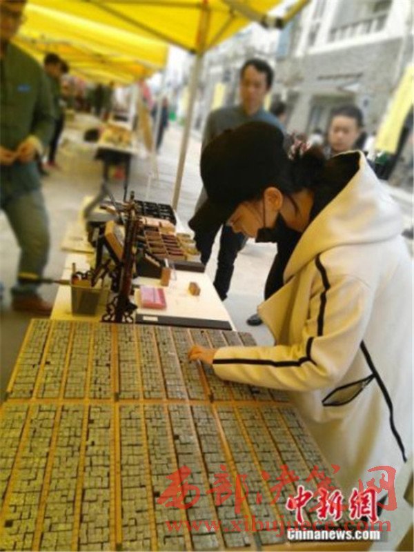 資料圖:作為四大發(fā)明之一的活字印刷術,它的展示吸引了一些市民的駐足觀看。