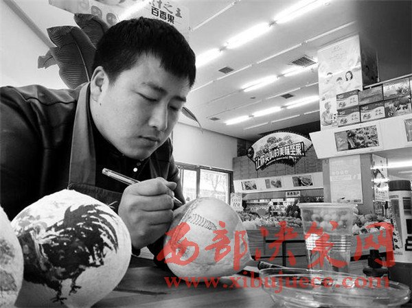 銀慧君算是找到了“用武之地”。他學的是國畫,賣的是水果,如何把興趣和工作結(jié)合起來,他想了一個辦法:在賣的椰子殼上作畫。