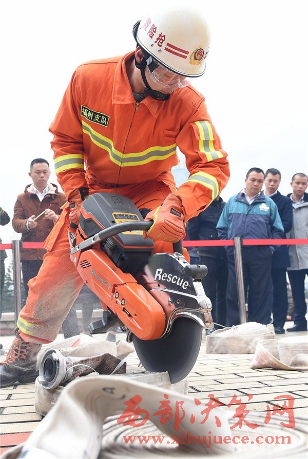 3月14日,福州市公安消防支隊戰(zhàn)士在銷毀假冒偽劣消防水帶。