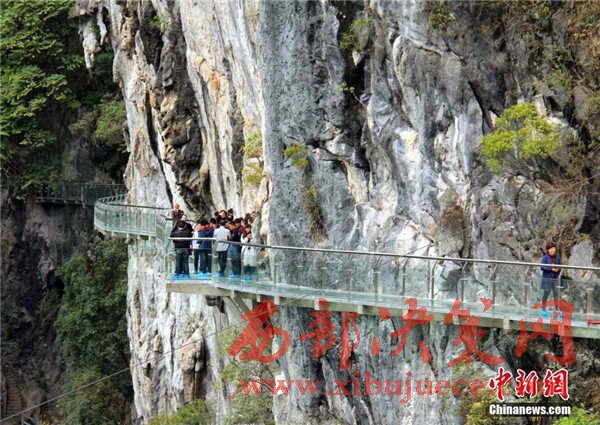 廣西最長玻璃棧道建在崖壁上最高懸空60米