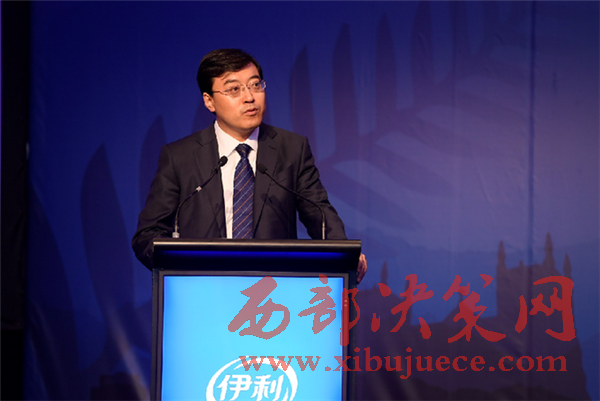 伊利集團董事長兼總裁潘剛在“伊利大洋洲生產(chǎn)基地(二期)揭牌暨金領(lǐng)冠睿護奶粉面世儀式”上發(fā)表主旨演講。