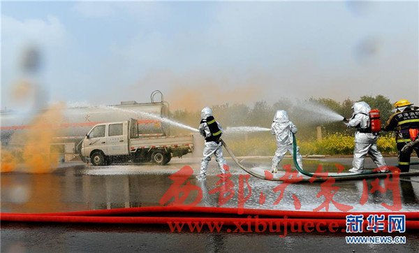 當日,山東省菏澤市消防、交通等部門為有效應對?;返缆愤\輸突發(fā)事件,提高應急救援和協(xié)調能力,聯(lián)合開展?;愤\輸企業(yè)事故應急救援演練,出動消防、救護等車輛10余臺,近百人參加演練。