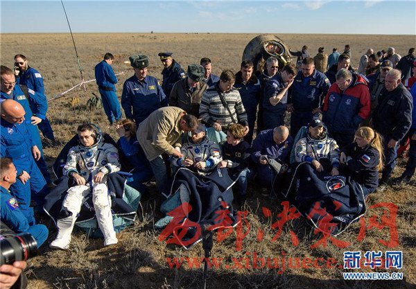 國(guó)際空間站三名宇航員乘坐“聯(lián)盟MS-02”飛船著陸