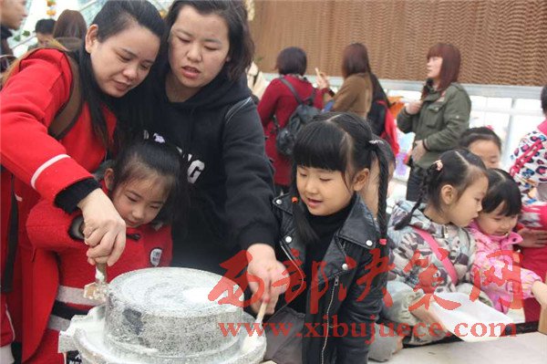 家長和孩子一起體驗磨豆?jié){