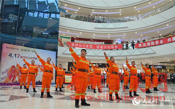 4月17日上午,在哈西萬達(dá)廣場以小虎隊經(jīng)典歌曲《愛》為背景音樂的舞蹈拉開了哈爾濱市消防支隊南崗大隊2017年“4·17”消防宣傳日活動的序幕。舞蹈的表演者全部為南崗大隊的消防官兵,歡快的樂曲和官兵們整齊的舞蹈動作吸引了市民紛紛駐足觀看宣傳活動。