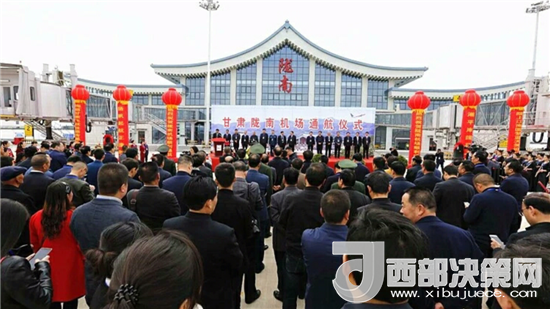 西部決策網(wǎng)——西部大開發(fā)訊(帥華鋒 通訊員 馬存福 馬智泉)2018年3月25日上午11點20分甘肅隴南成縣機場迎來首航!一架從重慶飛來的華夏航空龐巴迪CRJ900客機穿越云層,呼嘯著俯沖而下,平穩(wěn)降落在隴南成縣機場,這標志著隴南成縣機場正式通航。剎那間,機場一片歡呼聲和鼓樂聲,隴南全市人民多年的飛天夢想終于實現(xiàn)了!