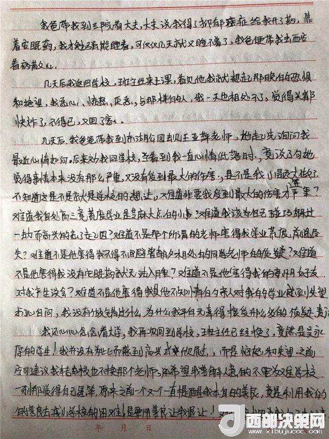 在與李某奕父親了解的過(guò)程中得知,雖然父母離異但并未影響她的學(xué)習(xí),不像網(wǎng)友猜測(cè),她是因?yàn)楦改鸽x異患抑郁癥的。李某奕在校學(xué)習(xí)期間(事發(fā)之前)非??炭?,她一直夢(mèng)想報(bào)考新聞傳媒專業(yè),且經(jīng)常參加學(xué)校的各種活動(dòng)并擔(dān)任主持人。但一切就從班主任吳某厚的獸行之后開(kāi)始改變了。從患病開(kāi)始她一直堅(jiān)持要上學(xué),但由于吃藥的緣故她不能正常的上課,加之長(zhǎng)期的治療也落下不少功課,最后由于身體和心理原因,她感覺(jué)力不從心。中途三次試圖吃大量鎮(zhèn)定類、抑郁類藥物想要結(jié)束自己的生命,都被及時(shí)搶救了下來(lái)。在她的控訴書(shū)中有一段:“明明該像鮮花一樣美好的年齡,我卻不知道為什么人要活著?明明比金銀還寶貝的時(shí)間剩了那么一點(diǎn)點(diǎn),我卻不得不中斷學(xué)習(xí),而是給自己找活下去的理由。終日伴著眼淚入睡,時(shí)常被嚇醒,這個(gè)世界上沒(méi)有什么比自己都不知道自己什么時(shí)候發(fā)神經(jīng)尋死,自己努力為自己找活下去的理由更讓人覺(jué)得痛苦。而這一切都是我那曾經(jīng)的老師和信任的學(xué)校造成的。”從實(shí)際了解和李某奕控訴書(shū)中的描寫(xiě),她整日活在焦慮、恐懼、痛苦之中,這樣的生活離她的大學(xué)夢(mèng)想越來(lái)越遠(yuǎn),直至破滅。