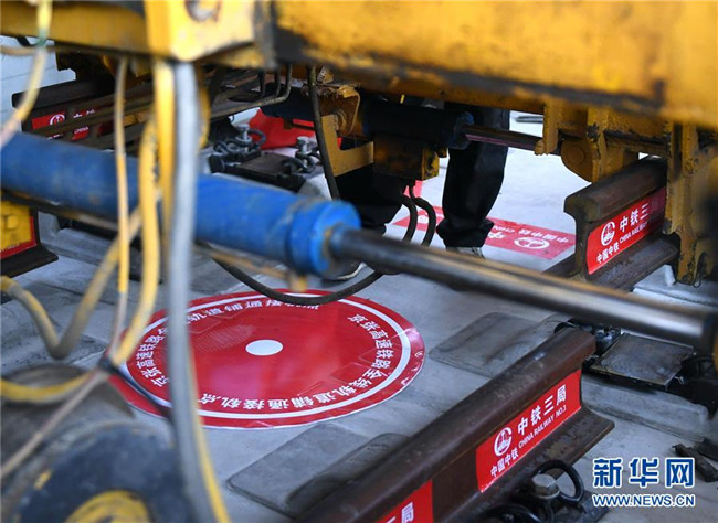 6月12日,在京張高鐵清華園隧道,鋪軌車(chē)在進(jìn)行鋪軌作業(yè)。新華社記者 張晨霖 攝