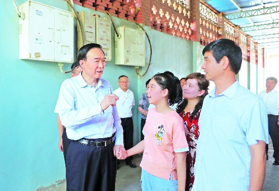 6月18日,新疆維吾爾自治區(qū)黨委書記陳全國到吐魯番市調(diào)研。這是陳全國在吐魯番市高昌區(qū)亞爾鎮(zhèn)英買里村,走訪慰問阿里木·吐爾遜一家,并仔細(xì)詢問生產(chǎn)生活、子女就學(xué)等情況。崔志堅 攝