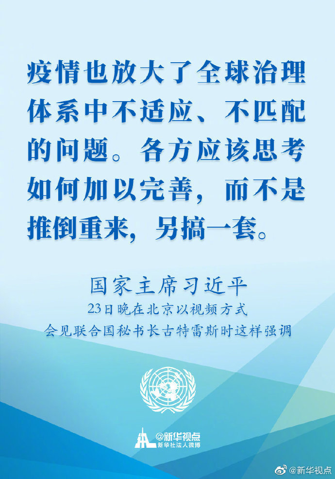 國家主席習近平23日晚在北京以視頻方式會見聯(lián)合國秘書長古特雷斯時講話的金句