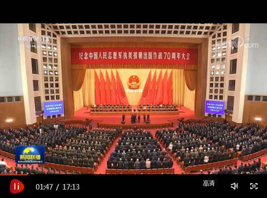 習(xí)近平:“我代表黨中央、國務(wù)院和中央軍委,向所有健在的中國人民志愿軍老戰(zhàn)士、老同志、傷殘榮譽(yù)軍人,向當(dāng)年支援抗美援朝戰(zhàn)爭的全國各族人民特別是參戰(zhàn)支前人員,向中國人民志愿軍烈屬、軍屬致以最誠摯的問候。”