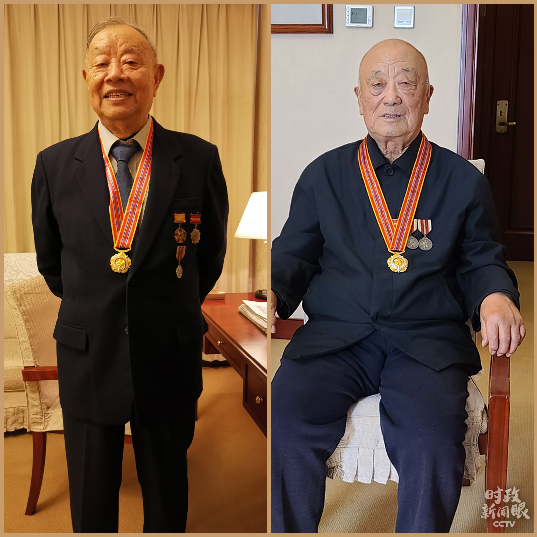 △今年86歲的張元杰(左)參加過上甘嶺戰(zhàn)役,榮獲三等功2次,90歲的王德啟(右)在抗美援朝期間榮立三等功4次。他們都出席了當(dāng)天的紀(jì)念大會。(總臺央視記者王曉東、趙化拍攝)