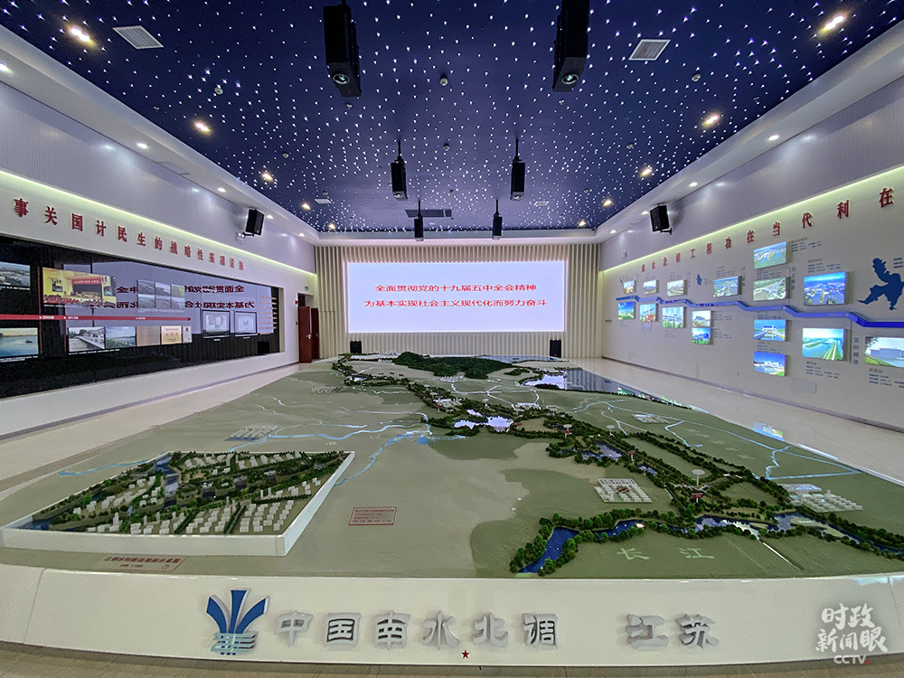 △江都水利樞紐展廳中的“南水北調(diào)東線工程”沙盤展示(總臺央視記者彭漢明拍攝)