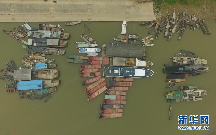 在湖南常德漢壽縣蔣家嘴鎮(zhèn),待回收的鐵漁船停靠在洞庭湖邊(2019年12月17日攝,無人機照片)。2020年1月1日零時起,長江流域332個自然保護(hù)區(qū)和水產(chǎn)種質(zhì)資源保護(hù)區(qū)全面禁止生產(chǎn)性捕撈。新華社記者 薛宇舸 攝