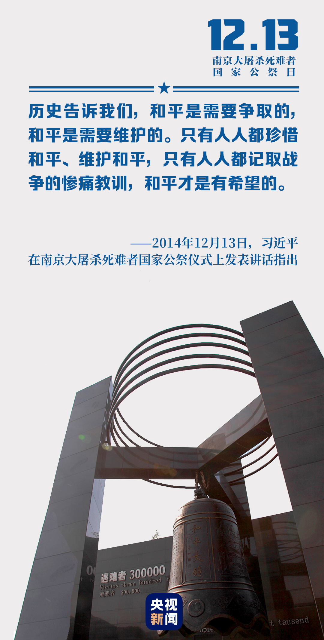 “牢記歷史、不忘過去,珍愛和平、開創(chuàng)未來”,6年前的12月13日,習(xí)近平總書記在公祭儀式上的講話深沉而堅定。
