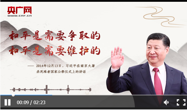 這段話出自2014年12月13日習(xí)近平在南京大屠殺死難者國家公祭儀式上的講話。