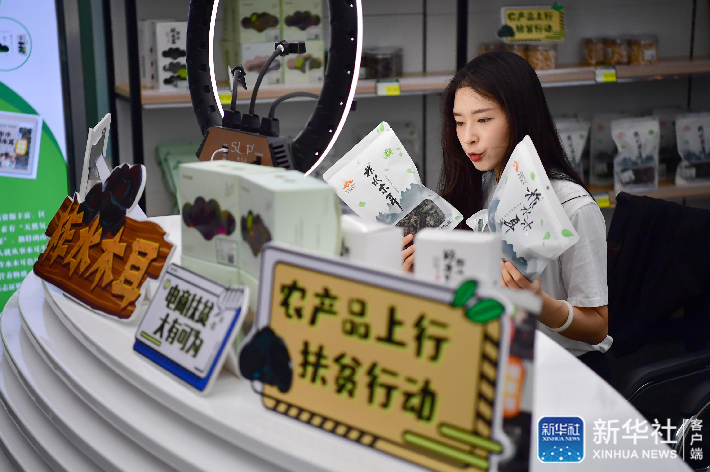 7月21日,在陜西柞水縣小嶺鎮(zhèn)金米村木耳展銷中心內(nèi),電商主播何錦漪通過(guò)直播售賣(mài)柞水木耳。新華社記者 邵瑞 攝