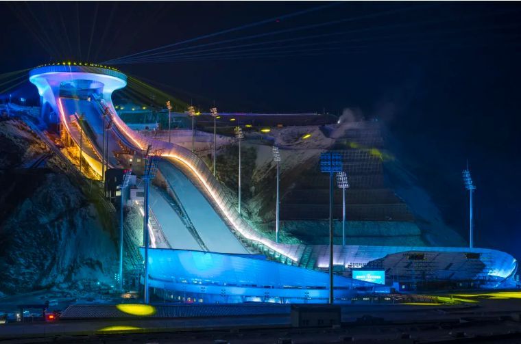 ↑位于河北省張家口市崇禮區(qū)的國家跳臺滑雪中心別名“雪如意”,是北京冬奧會的主要比賽場館之一。主體建筑靈感來自中國傳統(tǒng)飾物“如意”,實現(xiàn)了建筑設(shè)計和中國傳統(tǒng)文化的有機(jī)結(jié)合,也是2022年北京冬奧會張家口賽區(qū)工程量最大、技術(shù)難度最高的競賽場館。這是“雪如意”夜間燈光點亮效果(無人機(jī)照片,2020年12月19日攝)。新華社發(fā)