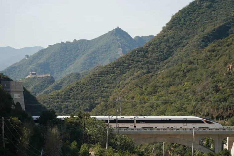 ↑2019年12月30日,北京冬奧會重要配套基礎(chǔ)設(shè)施工程——北京至張家口高速鐵路開通運(yùn)營。京張高鐵是由我國自主設(shè)計建造的時速350公里智能高速鐵路。開通后,北京至張家口太子城的冬奧會主賽場可在1小時內(nèi)通達(dá),同時為推動北京非首都功能疏解、京津冀協(xié)同發(fā)展注入新動力。這是一列復(fù)興號高鐵列車從京張高鐵駛過居庸關(guān)長城(2020年10月6日攝)。新華社記者 鞠煥宗 攝