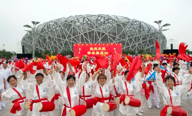 ↑2015年7月31日,市民在北京國家體育場“鳥巢”前慶祝北京攜手張家口獲得2022年冬奧會舉辦權(quán)。新華社記者謝環(huán)馳攝