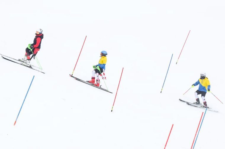 ↑為備戰(zhàn)2022年北京冬奧會,選拔優(yōu)秀隊員,中國國家高山滑雪集訓(xùn)隊自2018年底起陸續(xù)在歐洲阿爾卑斯山區(qū)多個雪地訓(xùn)練基地內(nèi)開展訓(xùn)練和比賽。這是在奧地利蒂羅爾州一處雪場內(nèi),集訓(xùn)隊隊員們在進(jìn)行熱身訓(xùn)練(2019年4月5日攝)。新華社記者 郭晨 攝