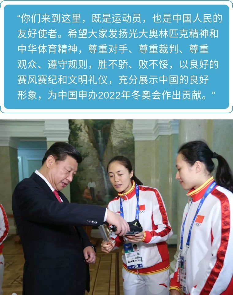 ↑2014年2月7日,中共中央總書記、國家主席、中央軍委主席習(xí)近平在俄羅斯索契親切看望參加第二十二屆冬季奧林匹克運(yùn)動會的中國體育代表團(tuán)。這是運(yùn)動員向習(xí)近平介紹冰雪運(yùn)動器材。新華社記者 蘭紅光 攝