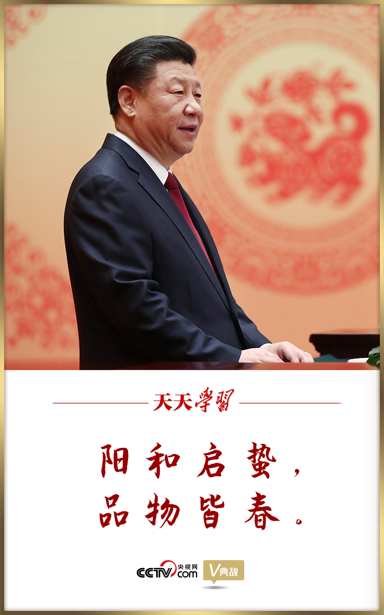2018年,祖國大地春來早,立春剛過,春節(jié)將臨。在春節(jié)團(tuán)拜會(huì)上,習(xí)近平總書記在講話開場即引用“陽和啟蟄,品物皆春”這一名句,描繪了祖國大地春風(fēng)拂面、萬象更新的景象。