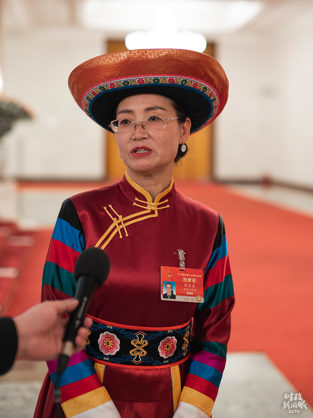 △沙沨代表在當天的發(fā)言中,建議將基層治理以法治化手段實現(xiàn),一站式服務(wù)讓百姓少跑路。(總臺央視記者張曉鵬拍攝)