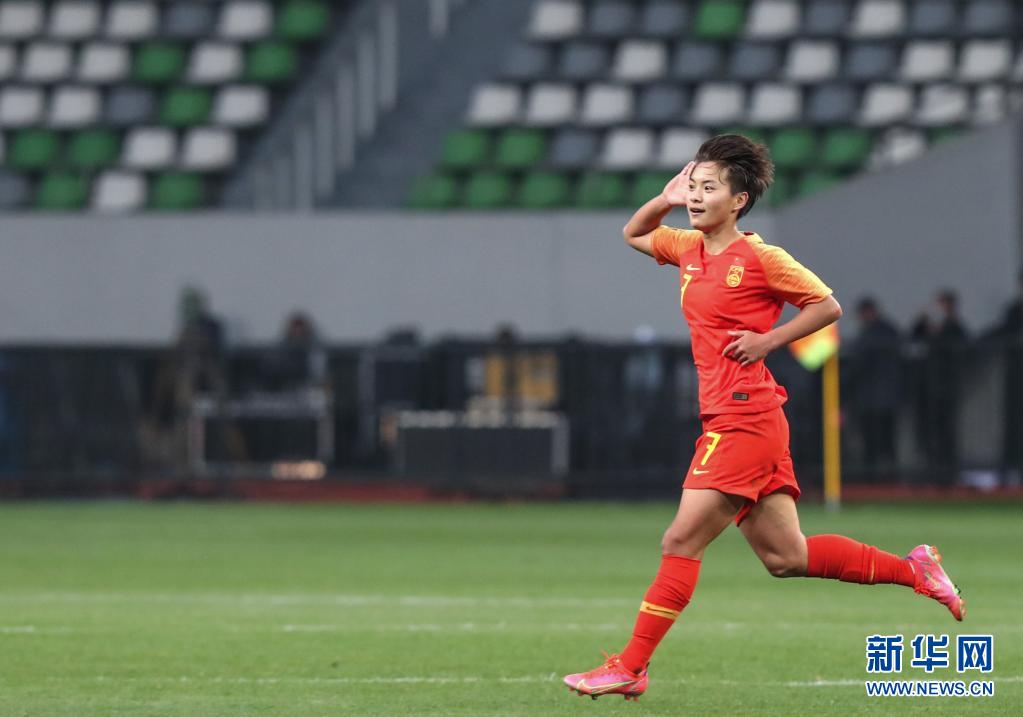 4月13日,中國(guó)隊(duì)球員王霜在比賽中慶祝進(jìn)球。新華社記者楊磊攝