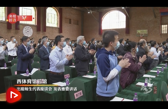 在西體育館后館,習近平總書記出席師生代表座談會,發(fā)表重要講話。他強調(diào)堅持中國特色世界一流大學建設目標方向,為服務國家富強、民族復興、人民幸福貢獻力量。