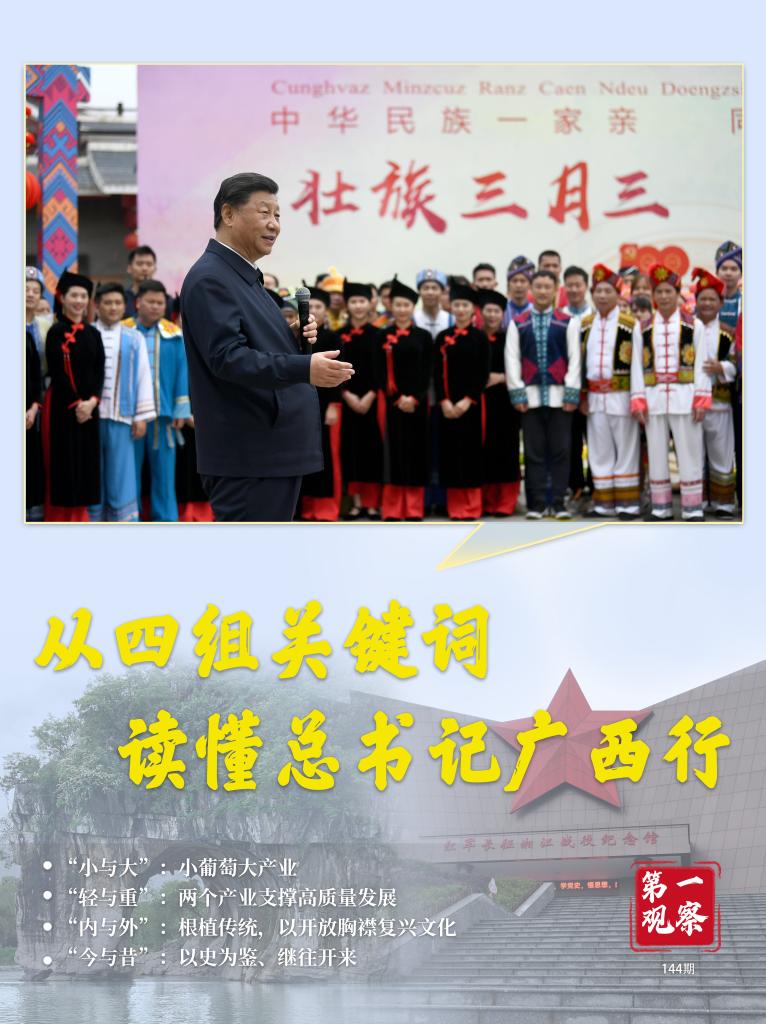 這一次,我們換個(gè)視角,通過(guò)“小與大”“輕與重”“內(nèi)與外”“今與昔”四組關(guān)鍵詞,讀出總書(shū)記廣西之行的深意。