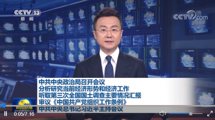 分析研究當(dāng)前經(jīng)濟(jì)形勢(shì)和經(jīng)濟(jì)工作 聽(tīng)取第三次全國(guó)國(guó)土調(diào)查主要情況匯報(bào) 審議《中國(guó)共產(chǎn)黨組織工作條例》