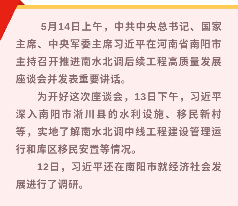 ↑這是14日上午,習(xí)近平在南陽(yáng)市主持召開(kāi)推進(jìn)南水北調(diào)后續(xù)工程高質(zhì)量發(fā)展座談會(huì)并發(fā)表重要講話(huà)。