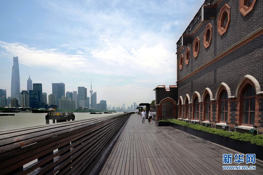 5月15日,市民在楊浦濱江公共空間楊樹(shù)浦水廠段的棧橋上漫步。新華社記者 劉穎 攝