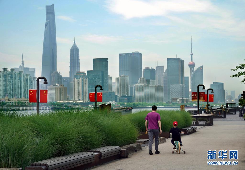 5月15日,市民在楊浦濱江公共空間休閑漫步。新華社記者 劉穎 攝
