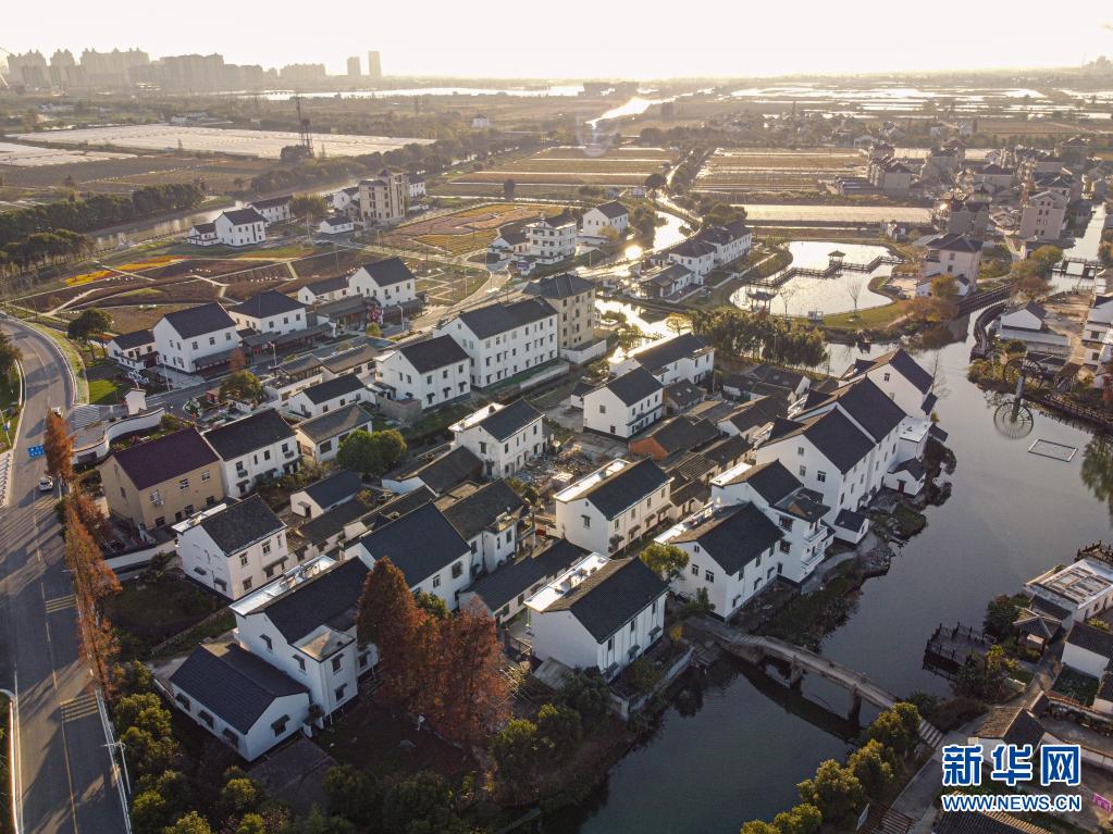 嘉興市秀洲區(qū)油車(chē)港鎮(zhèn)勝豐村景色(無(wú)人機(jī)照片,2020年12月15日攝)。新華社發(fā)(江漢 攝)