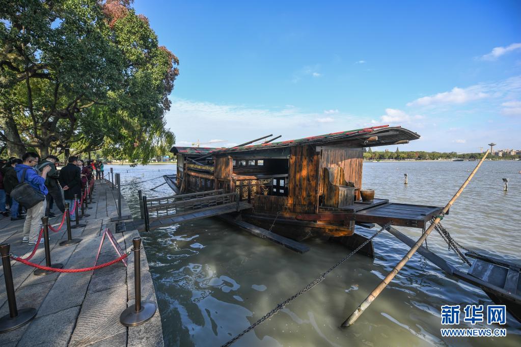 ??吭诩闻d南湖湖心島的南湖紅船(2020年10月27日攝)。新華社記者 徐昱 攝
