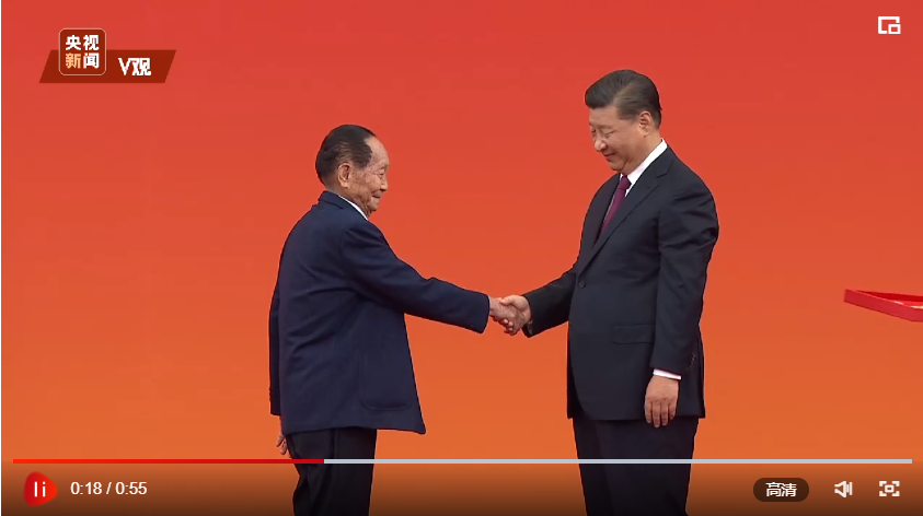 2019年9月29日,中華人民共和國國家勛章和國家榮譽(yù)稱號頒授儀式在人民大會堂隆重舉行。習(xí)近平向“共和國勛章”獲得者袁隆平頒授勛章。